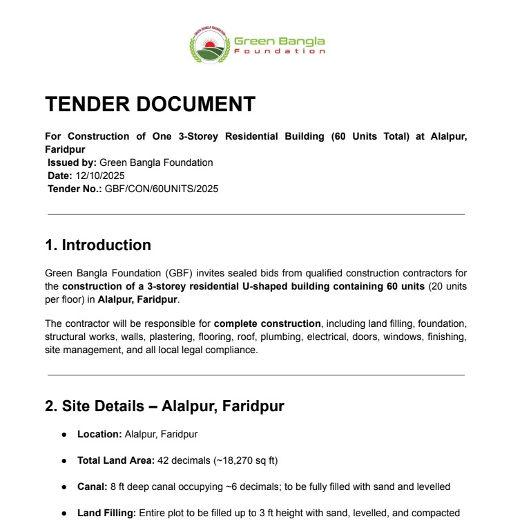 Green Bangla Foundation (GBF) hereby invites sealed tenders from eligible and qualified